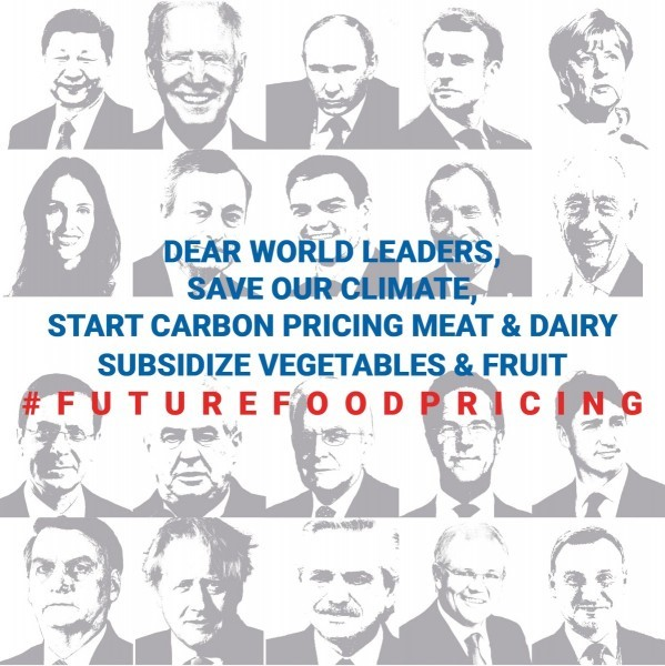 Die Kampagne „Carbon Pricing for Food" ruft die Staatsoberhäupter der 50 Länder mit dem höchsten Fleischverzehr weltweit dazu auf, die Preise für Fleisch und Molkereiprodukte zu erhöhen. Damit würden die Preise eher den Tatsachen entsprechen, denn Fakt ist: der Konsum von Fleisch bringt viele versteckte Kosten für Umwelt und Gesundheit mit sich. Wissenschaftler der EAT-Lancet-Kommission haben errechnet, dass ein Fleischkonsum von 300 Gramm pro Woche (entspricht 16 kg pro Person und Jahr) optimal für die Verbrauchergesundheit und das Klima wäre. In den 50 Ländern, an die sich der Appell richtet, werden aber durchschnittlich 78 kg pro Person und Jahr verzehrt – in Deutschland sind es sogar 88 Kg.Notwendige Maßnahme mit vielen Vorteilen