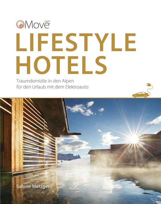 In dem handlichen Bildband „Lifestyle-Hotels" stellt Sabine Metzger Domizile in den Alpen für den Urlaub mit dem Elektroauto vor.