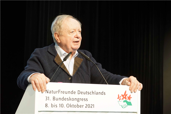 "Das Anthropozän wird die Zukunft des menschlichen Lebens maßgeblich bestimmen", betonte Michael Müller, der mit großer Mehrheit erneut zum NaturFreunde-Bundesvorsitzenden gewählt wurde. Der langjährige umweltpolitische Sprecher der SPD-Bundestagsfraktion warnte vor den Folgen des fortdauernden Überschreitens der ökologischen Grenzen des Wachstums: "Dabei stirbt nicht nur die Natur, auch ein Ende der menschlichen Zivilisation ist denkbar."Es greife viel zu kurz, allein den Ausstieg aus den fossilen Brennstoffen zu fordern. Die Menschheit, vor allem im globalen Norden, müsse sehr schnell und drastisch runter von ihren viel zu hohen Ressourcen-Verbräuchen, forderte Müller, der prognostizierte, dass die ökologische Krise in den nächsten Jahren die sozialen Kräfteverhältnisse massiv verschieben und die Gerechtigkeitsfrage ins Zentrum rücken werde. Deshalb müsse neben dem Schutz von Klima und biologischer Vielfalt auch die Demokratie gestärkt werden, die immer stärker unter Druck gerate.