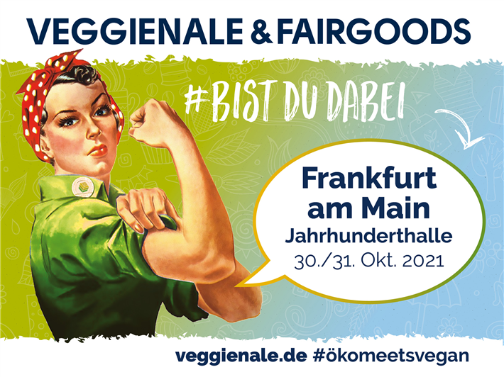 Nach gut einem Jahr pandemiebedingter Pause planen die Veranstalter der Berliner Agentur ECOVENTA den Re-Start der VEGGIENALE & FAIRGOODS – Messe für pflanzlichen Lebensstil und ökologische Nachhaltigkeit. Das deutschlandweit einzigartige Konzept mit dem Motto „Öko + vegan macht stark!" gastiert damit zum vierten Mal in der Hessenmetropole, konkret am Wochenende des 30. und 31. Oktober 2021 in der Jahrhunderthalle, Pfaffenwiese 301, 65929 Frankfurt.