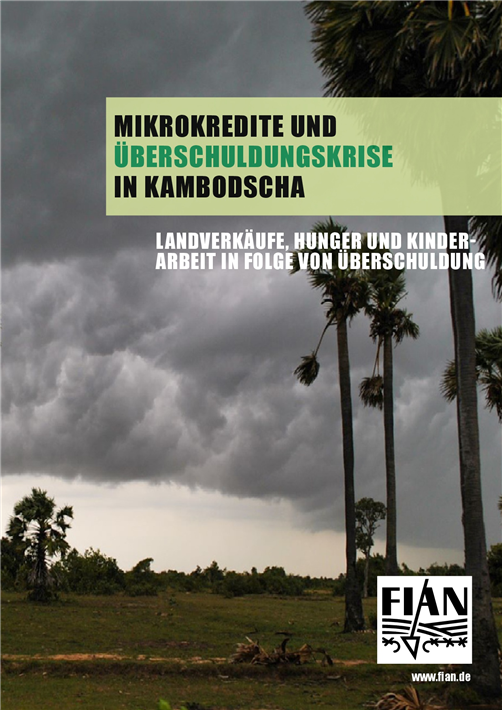 Manche verkaufen ihr Land und nehmen alles Geld, um die Banken zu bezahlen. Wenn das Geld nicht reicht, verkaufen sie auch ihr Haus. Manche sind gezwungen, ihre Kinder aus der Schule zu nehmen und arbeiten zu lassen, um die Schulden zu tilgen." Was die Landrechtsaktivistin Phav Nherng aus der Gemeinde Chi Khor Kraom im Südwesten Kambodschas berichtet ist kein Einzelfall, wie die am 17.2. veröffentlichte FIAN-Studie "Mikrokredite und Überschuldungskrise in Kambodscha" aufzeigt. Überall im Land werden überschuldete Haushalte in Hunger und den Verkauf ihrer Felder getrieben. Familienmitglieder müssen in die Städte oder ins Ausland migrieren. Kinder und Jugendliche werden aus der Schule genommen, um bei der Rückzahlung der Darlehen zu helfen. Manche Familien werden sogar in die Schuldknechtschaft getrieben. Betroffene haben kaum eine Möglichkeit, sich zu wehren - es gibt kaum Gesetze oder Verordnungen, welche Mikrokreditnehmer*innen schützen.
