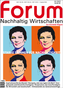 Sie rüttelt auf, um schon heute rechtzeitig gegenzusteuern. Mehr dazu im forum Nachhaltig Wirtschaften 01/2022, das soeben erschienen ist.