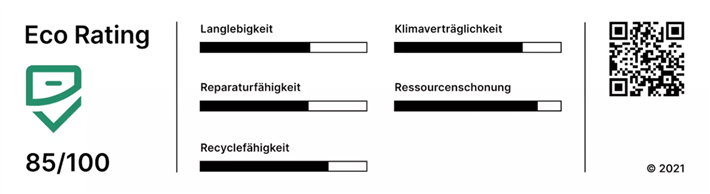 - Wir unterstützen Kund:innen, die schon beim Kauf auf Langlebigkeit und Nachhaltigkeit des Gerätes achten möchten. Mit dem Fairphone bieten wir eines der nachhaltigsten Smartphones am Markt an. Darüber hinaus können sich Kund:innen anhand des branchenweiten Ökobewertungssystems Eco Rating auf einen Blick über Langlebigkeit, Wiederverwertbarkeit, Reparierbarkeit, Ressourcen- und Klimaeffizienz von Mobilfunkgeräten informieren.
