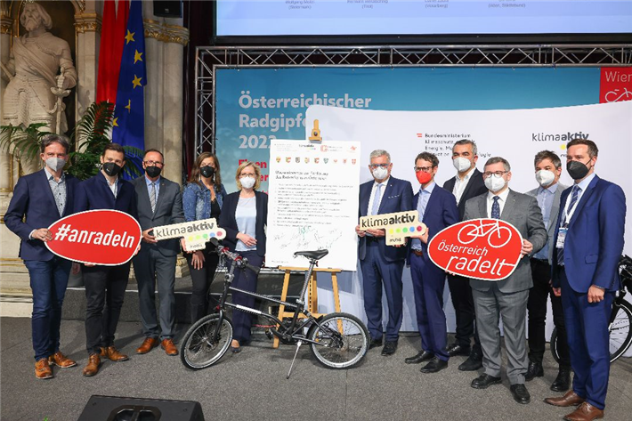 Am ersten Abend des 13. Österreichischen Radgipfels, der von 3. bis 5. April in Wien stattfindet, zeichnete das Klimaschutzministerium (BMK) in Summe 68 klimaaktiv mobil Kompetenzpartner:innen für ihre geballte Radfahrkompetenz und ihr Engagement zur Förderung des Radfahrens als gesundheitsfördernde und klimafreundliche Mobilitätsform aus. Der Großteil der insgesamt 60 Radfahrlehrer:innen und acht Radfahr-Mastertrainer:innen aus ganz Österreich nahm die Auszeichnung persönlich aus den Händen von Klimaschutzministerin Leonore Gewessler und Michael Nendwich (Obmann des Sportartikelhandels in der WKO) entgegen.„Radfahren ist nicht nur eine wichtige Kompetenz für die klimaneutrale Mobilität der Zukunft, es hält auch fit und macht Freude. Das machen auch die klimaaktiv mobil Radfahrkurse für Volksschulkinder sichtbar, die sehr positiv angenommen werden. Der Schlüssel zu diesem Erfolg sind eindeutig unsere engagierten klimaaktiv mobil Radfahrlehrenden. Sie bringen unseren Kleinsten österreichweit die Vorzüge des Radfahrens näher und klären sie über die Sicherheit am Rad auf dem Schulweg und im Alltag auf", so Klimaschutzministerin Leonore Gewessler im Rahmen der Auszeichnung.