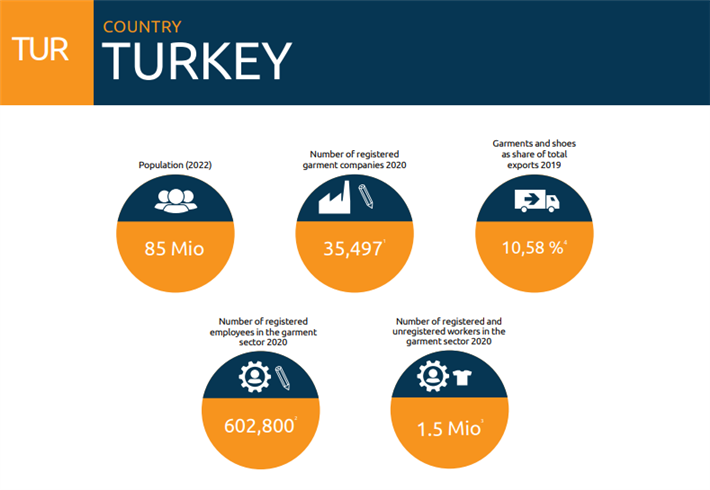 1,5 Millionen Menschen beschäftigt die türkische Bekleidungsindustrie. Sie nähen für globale Modeplayer wie Adidas, Banana Republic, Benetton, Boohoo, C&A, Esprit, GAP, G-star, Hugo Boss, H&M, Inditex - Zara, Levi's, Marks & Spencer, Next, Nike, Puma, Primark, Urban Outfitters, VF. Fast jede Modemarke lässt in der Türkei nähen. Die fünf wichtigsten Exportmärkte für Bekleidung "Made in Turkey" sind Deutschland, Spanien, Großbritannien, die Niederlande und Frankreich (in der Reihenfolge ihres Exportanteils). Die Clean Clothes Campaign stellt heute das aktuelle Länderprofil der Türkei (in englischer Sprache) vor.