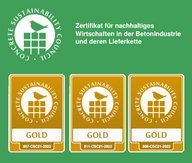 Concrete Sustainability Council (CSC) vergibt Zertifizierung in Gold für Rinn Die CSC-Zertifizierung führt zu einer kontinuierlichen Steigerung im nachhaltigen Wirtschaften der Zement-, Rohstoff und Betonindustrie. |