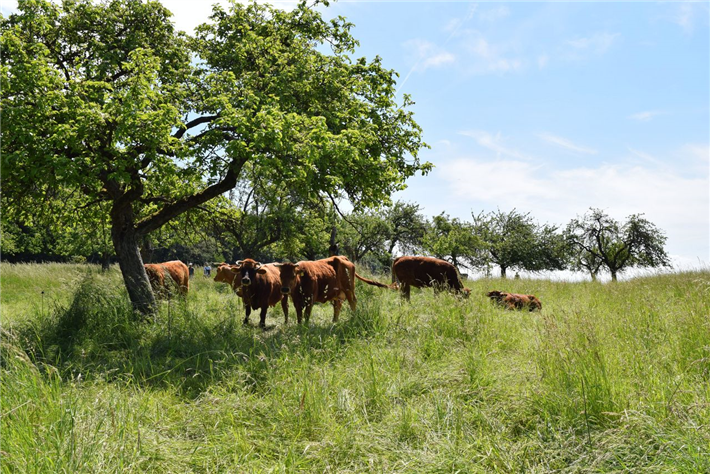 Seit über einem Jahr grasen die Rinder der aussterbenden Nutztierrasse Murnau-Werdenfelser im Wiesbadener Ortsteil Breckenheim. Sie gehören der Naturschutzorganisation Naturefund, die mit ihrem Projekt "Kühe für den Klimaschutz" die seltenen Tiere erhalten, für Pflegemaßnahmen in Naturschutzgebieten einsetzen und Graslandschaften als wichtige Kohlenstoffsenken schützen will. Die inzwischen aus sieben Kühe bestehende Herde wird dabei täglich von den Naturschützern betreut und beobachtet, denn die Herde weidet nach den Prinzipien des Ganzheitlichen Weidemanagements.