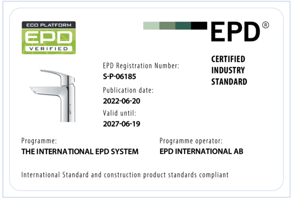 Environmental Product Declarations („Umweltproduktdeklarationen") werden von der Europäischen Kommission als geeignetes Mittel zur Nachhaltigkeitsbewertung eines Gebäudes angesehen, da die darin verwendeten Materialien und Produkte die Auswirkungen eines Gebäudes auf die Umwelt maßgeblich bestimmen [2]. Um Kund:innen gegenüber Transparenz über den ökologischen Fußabdruck ihrer Produkte zu bieten, wird die Sanitärmarke GROHE bis Ende Oktober EPDs für 18 Produktgruppen mit mehr als 600 Einzelprodukten veröffentlichen. Die erste Reihe von EPDs, die Ende Juli 2022 veröffentlicht wurde, umfasst Waschtisch- und Küchenarmaturen, Thermostate und Brausestangensets. Der zweite Teil, dessen Veröffentlichung bis Ende Oktober 2022 folgt, wird Spezialarmaturen, Handbrausen, Installationssysteme und Betätigungsplatten beinhalten.