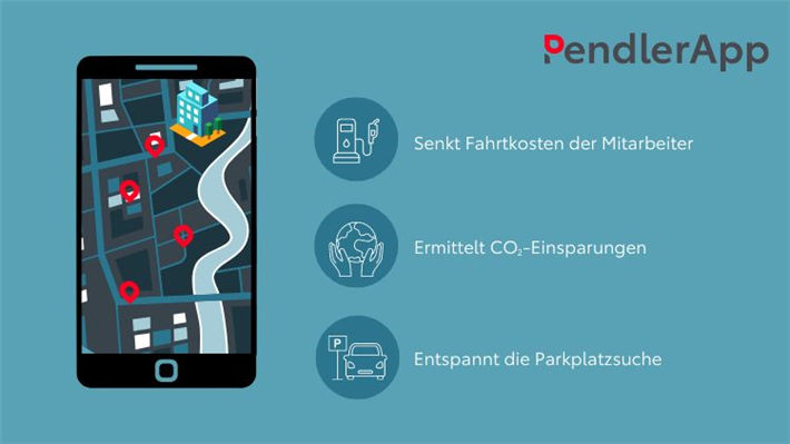 Die PendlerApp bietet den Mitarbeitern eines Unternehmens eine Plattform, um innerbetriebliche Fahrgemeinschaften zu organisieren und durchzuführen. Die App zeigt eine Karte, auf der Kollegen eine Fahrgemeinschaft anbieten oder suchen und sich mit wenigen Klicks vernetzen. All dies funktioniert nach dem Prinzip der Progressive Web-App (PWA). Dabei besitzt die Website wesentliche Eigenschaften einer App und kann auf Desktop, Smartphone oder Tablet genutzt werden, ohne dass sie heruntergeladen werden muss.
