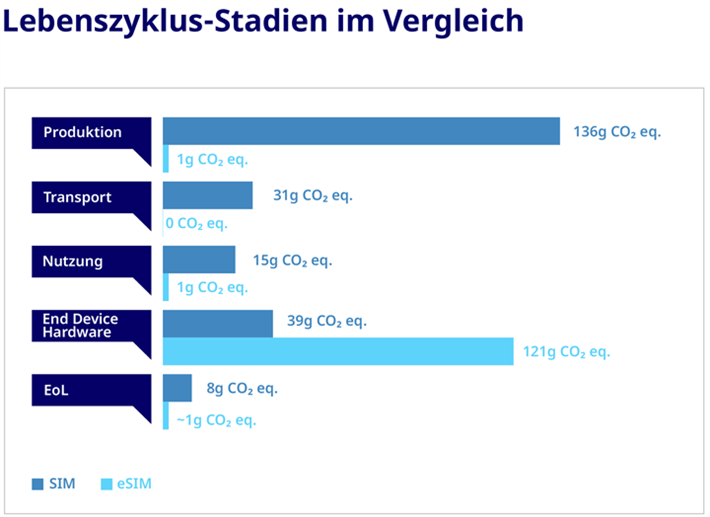 Die Untersuchung der Umweltwirkungen von SIM-Karten und embedded SIMs (eSIM) zeigt einen deutlichen Vorsprung für die eSIM. Die Ergebnisse einer vergleichenden Ökobilanzierung bestätigen in allen analysierten Umweltwirkungskategorien die eSIM als die umweltfreundlichere Lösung. Besonders hervorzuheben ist dabei der geringere Ausstoß von CO2-Emissionen. Die Lebenszyklus-Analyse der beiden Formate ergibt eine Minderemittierung der eSIM von 46 Prozent gegenüber der SIM-Karte (123 g CO2-Äquivalent versus 229 g CO2-Äquivalent). Noch deutlicher sind die Unterschiede in den verschiedenen Stadien des Lebenszyklus: So entstehen bei der SIM-Karte 59 Prozent der Emissionen während der Produktion (Upstream), während Transport und Nutzung (Downstream) für 41 Prozent stehen. Bei der eSIM dagegen fallen bei der Produktion lediglich 2 Prozent der Emissionen an. Die restlichen 98 Prozent sind dem Downstream geschuldet, da der eSIM-Chip vom OEM (Original Equipment Manufacturer) in das Mobilgerät eingebaut wird.Die Lebenszyklus-Analyse (LCA) erfolgte durch G+D und das Fraunhofer IZM nach der ISO-Norm 14040/14044 und wurde von einem externen Review Panel begleitet. Die Ergebnisse wurden anschließend durch ein Review Statement bestätigt. Das Setup der Untersuchung prüfte die Umweltwirkungen einer (1) SIM-Karte und einer (1) eSIM bei der Authentifizierung eines (1) Single Users im Mobilfunknetz inklusive Nutzung der Funktionalität für die Dauer von drei Jahren. Das entspricht der typischen Nutzungsdauer eines Smartphones. Neben der Untersuchung der eingesetzten Rohstoffe und Materialien in der Produktion, den Transportwegen und der Nutzungsphase der Produkte bis hin zur Entsorgung wurden in der Lebenszyklus-Analyse auch Komponenten im Endgerät betrachtet, die die SIM-Funktionalität sicherstellen, wie beispielsweise SIM-Tray, SIM-Connector, zusätzliche Leiterplattenfläche und die SIM-Stromversorgung. Laut GSMA Report bieten bereits 260 Mobilfunkanbieter in 88 Ländern kommerzielle eSIM-Dienste für Smartphones an. Bis 2030 wird ein eSIM-Anteil von 76 Prozent aller Smartphone-Verbindungen prognostiziert. Das neue iPhone 14 verzichtet in den USA bereits auf einen SIM-Karten-Tray, andere Smartphone-Hersteller und OEMs werden diesem Beispiel folgen.