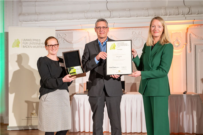„Die Verleihung des Umweltpreises an Unternehmen hat in Baden-Württemberg eine lange Tradition. Bereits seit dem Jahr 1993 vergeben wir diesen Preis an Unternehmen, die sich mit besonders großem Engagement für den betrieblichen Umweltschutz und ein nachhaltiges Wirtschaften einsetzen", würdigte Umweltministerin Thekla Walker in ihrer Laudatio die nominierten Unternehmen.Neben den klassischen Anforderungen an den Gewässer- und Luftschutz gehören auch der sparsame Umgang mit Ressourcen und Fragen der Energieeffizienz zu den Themen, die für die ausgewählten Unternehmen nicht nur in Krisenzeiten ganz oben auf der Prioritätenliste stehen. „Alle Unternehmen gehen oft mit hohem persönlichem Einsatz der Unternehmensführung und der Mitarbeitenden weit über die gesetzlichen Vorgaben hinaus. Sie beweisen tagtäglich, dass sich eine umweltorientierte Unternehmensführung auch wirtschaftlich lohnt", betonte die Umweltministerin.