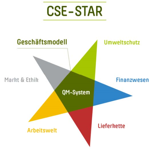 Sind alle Zacken des CSE-Sterns farbig ausgefüllt, wirtschaftet ein Unternehmen im Sinne der CSE-Kriterien und ist damit bereit für das CSE-Audit.