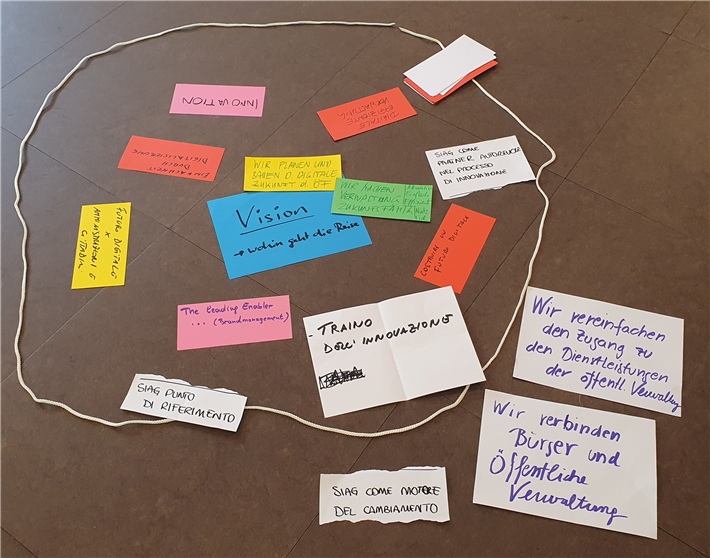 - Zu den Themen Identität und Werte diskutierte das Projektteam mit zahlreichen Mitarbeitenden bei einem World Café. Es entstanden auch inspirierende Visualisierungen.