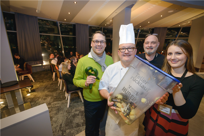Im frisch renovierten Panoramarestaurant STROM hat sich eine bunt gemischte Gästeschar zum Geburtstagsschmaus eingefunden, die Stimmung ist entspannt. Aber in einigen Gesichtern steht deutlich die Frage, was genau sich hinter einem Resteessen statt Gala Dinner verbergen könnte. „Natürlich servieren wir heute Abend keine übriggebliebenen Speisen von Tellern anderer," erläutert Küchenchef Dominik Flettner, „sondern bereiten unter anderem aus Gemüseabschnitten und -schalen leckere Fonds, Vorspeisen oder Salattoppings zu. Beim Resteessen teilen wir mit den Gästen auf genussvolle Weise unser Wissen, wie durch gezielten Einkauf und gute Planung möglichst alle Zutaten verwertet werden. Lebensmittel sind kostbare Ressourcen und wir sollten gemeinsam dafür sorgen, dass möglichst nichts davon bedenkenlos im Müll landet. Auch nicht nach unserer Geburtstagsfeier."Das einmal jährlich stattfindende Resteessen ist eine der Maßnahmen, die das ATLANTIC Hotel Sail City im Zuge seiner Strategie #grünunterwegs umsetzt, um andere für Klimaschutz zu sensibilisieren. Satt und zufrieden nehmen die 50 geladenen Gäste – vom Innovationsexperten über die Ernährungswissenschaftlerin bis zur Landwirtin – auch an diesem Abend wertvolle Tipps mit, ob für den Single Haushalt oder die Großküche.