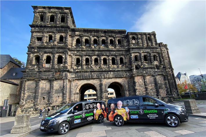 Die Stadtwerke Trier erproben mit dieser Zielsetzung sogenannte „Smart Shuttles" – zwei Elektro-Minibusse, die sich per Smartphone-App anfordern lassen. Der Testlauf wurde nach dem ersten halben Jahr verlängert und zugleich über weitere Bereiche des Stadtgebiets ausgeweitet.