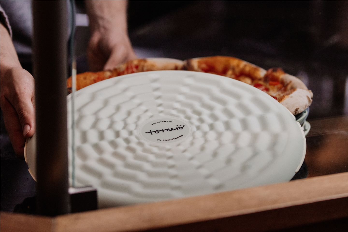 Das Start-Up tornerò hat sich Gedanken gemacht, wie Pizza nachhaltig verpackt werden kann und dabei warm und knusprig bleibt. Herausgekommen ist eine Pizza-Mehrwegsbox aus 100% recycelbarem PP im coolen Wellendesign, die bis zu 500 herkömmliche Pizzakartons ersetzt. Den Gründern von tornerò (ital. „ich werde wiederkommen") ist Zirkularität wichtig: Im Pfandsystem verliehen, bleiben die torneròs im Kreislauf und kehren am Ende ihrer Nutzungszeit zum Hersteller im Allgäu zurück.