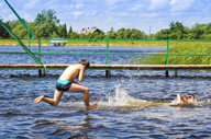 Was ist das da im Badesee? Grüne Punkte, wolkige Algenfäden, Muscheln, Fische, Libellen, Wasserläufer und Co. |