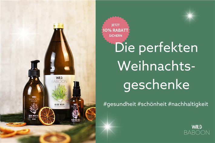 Die Bio Aloe Vera Produkte von Wild Baboon sind mehr als nur Pflegeprodukte. Sie sind ein Bekenntnis zu Qualität und Nachhaltigkeit. Geeignet für alle Altersgruppen und Geschlechter, verkörpern sie die Harmonie von Natur und Wissenschaft. Daher auch besonders gut geeignet als nachhaltiges Firmengeschenk!