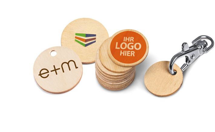 Ein echtes Stück Holz für den täglichen Einkauf – ob mit oder ohne Einzelverpackung ist Green Coin von e+m Holzprodukte ein ideales Werbemittel für jeden bewussten Verbraucher! Der Green Coin, das ist ein Einkaufswagenchip aus nachhaltigem, FSC-zertifiziertem Birkenholz. Die Vorderseite ist auf Wunsch mit dem Kundenlogo bedruckbar, die Rückseite ist gelasert mit dem FSC-Logo. Die Funktion ist TÜV-geprüft.