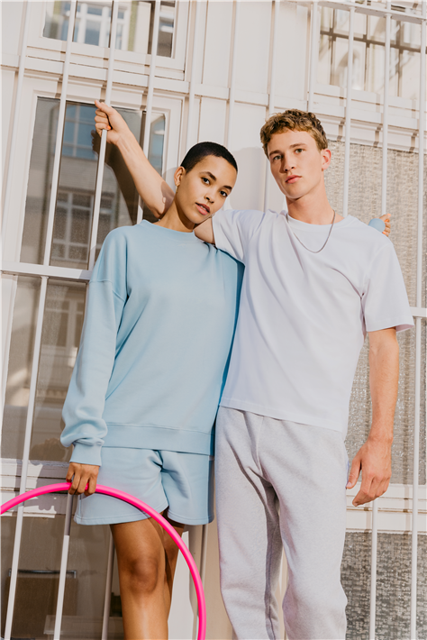 Die Kollektion beinhaltet lässig geschnittene T-Shirts, Tank Tops, Sweatshirts, Sweatpants und Hoodies im bequemen Oversized-Look in Natur- oder Pastelltönen. Der Anteil der recycelten Fasern, der mit wachsenden technischen Möglichkeiten weiter erhöht werden soll, liegt schon jetzt bei 30 Prozent und ist im Textil auf dezente Weise sichtbar. So verfügen die Kleidungsstücke über einen Melange-Effekt, der die ursprünglichen Fasern authentisch durchscheinen lässt.