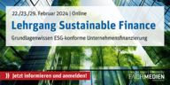 Praxisnahe Vorbereitung auf die Nachhaltigkeitsberichtserstattung Lehrgang Sustainable Finance, 22./23./29. Februar 2024 |