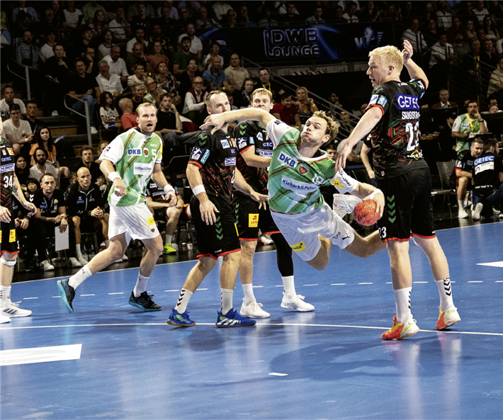 Im Bereich Reisen können wir natürlich nicht einfach zu Hause bleiben – wir wollen ja gegen Mannschaften aus anderen Städten und Ländern spielen, und das geht nicht per Videokonferenz. Da müssen wir bei jeder Reise abwägen: Wie können wir so klimafreundlich wie möglich reisen, ohne dabei die Fitness und Spielfähigkeit unserer Mannschaft zu beeinträchtigen? Innerhalb Deutschlands verzichten wir so gut es geht auf Flüge und die eigene Fahrzeugflotte stellen wir sukzessive auf Hybrid- und E-Mobilität um. Das kann jeder Club nachmachen (forum berichtete über die E-Flotten in den Bundesligaclubs in der Ausgabe 2-23). Ebenso achten wir nun bei der Auswahl von Trainingscamps auf eine kurze Anreise. Außerdem arbeiten wir daran, die Füchse-Fans bei der umweltfreundlichen Mobilität zu unterstützen, mit integrierten ÖPNV-Fahrscheinen in den Tickets und E-Ladestationen an der Halle. Denn die Außenwirkung ist ja, wie gesagt, das große Pfund des Profisports. Deshalb finde ich es auch super, dass die DFL sich so stark einsetzt, dass die Handball-Liga nun auch ein Nachhaltigkeitskonzept aufgesetzt hat und dass sogar die European Handball Federation (EHF) erste Schritte macht. So gewinnt die Thematik an Rückenwind.