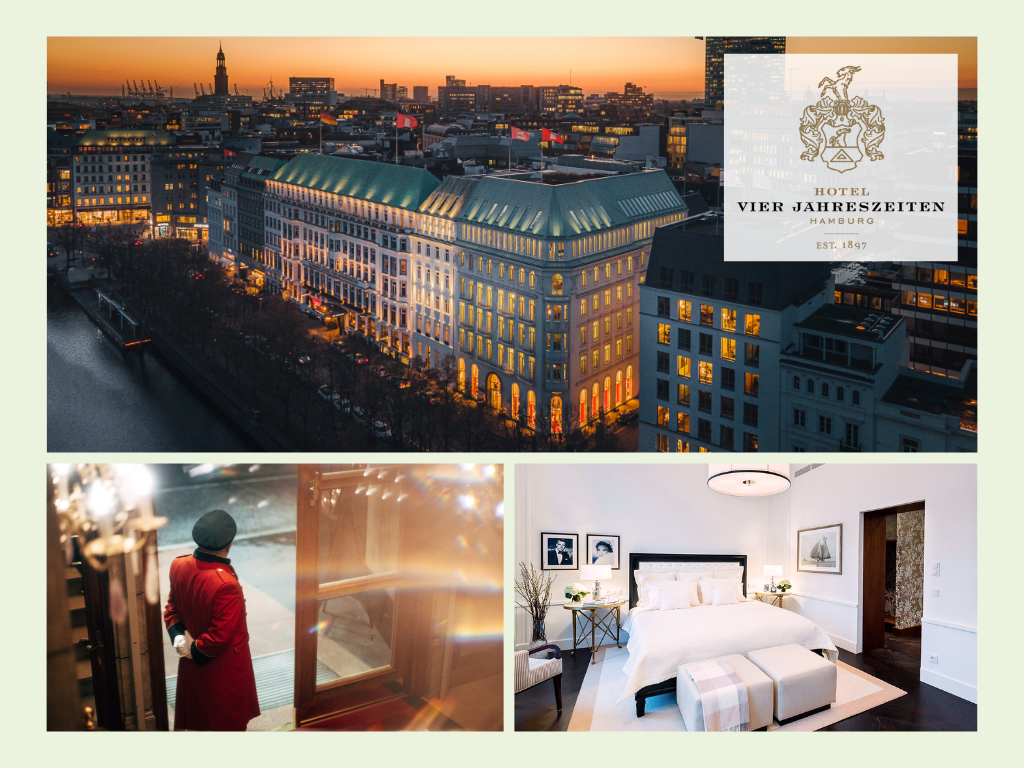 Das Hotel Vier Jahreszeiten in Hamburg, direkt am bekannten Jungfernstieg gelegen, verkörpert seit mehr als 125 Jahren hanseatischen Luxus. Über die deutschen Grenzen hinaus bekannt, hat sich dieses Grandhotel als bevorzugte Adresse für Royals, Politiker und berühmte Persönlichkeiten aus aller Welt etabliert. Die Unterkunft zeichnet sich durch unaufdringliche Zuvorkommenheit, unbedingte Verlässlichkeit und ausgeprägten Perfektionismus aus. Mit 156 luxuriösen Zimmern und Suiten, sieben Restaurants, der Jahreszeiten-Bar, der denkmalgeschützten Wohnhalle für Teatime aus der hoteleigenen Patisserie sowie einem umfangreichen Weinkeller bietet das Hotel ein außergewöhnliches Erlebnis.