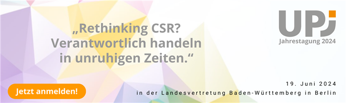 UPJ ist eine bundesweit tätige Nonprofit-Organisation für verantwortliche Unternehmensführung, gesellschaftliches Engagement und sektorenverbindende Kooperationen. Wir verbinden Menschen und Organisationen, die Verantwortung für einen gerechten Wandel in Wirtschaft und Gesellschaft übernehmen. Mit unseren Projekten und Programmen wirken wir lokal, regional und bundesweit. Wir treiben positive Veränderungen für Klima, Umwelt und nachhaltige Lieferketten voran. Wir stärken den gesellschaftlichen Zusammenhalt, indem wir das bürgerschaftliche Engagement von Unternehmen unterstützen.