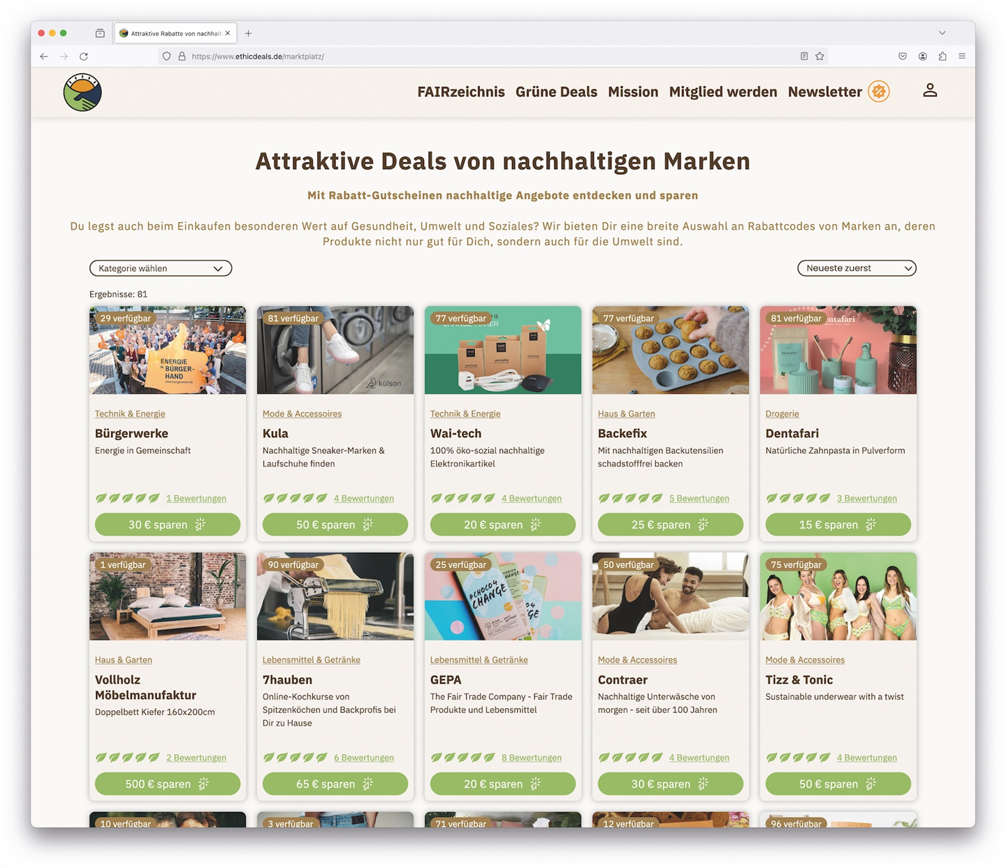 Fair und nachhaltig shoppen auf ethicdeals.de
