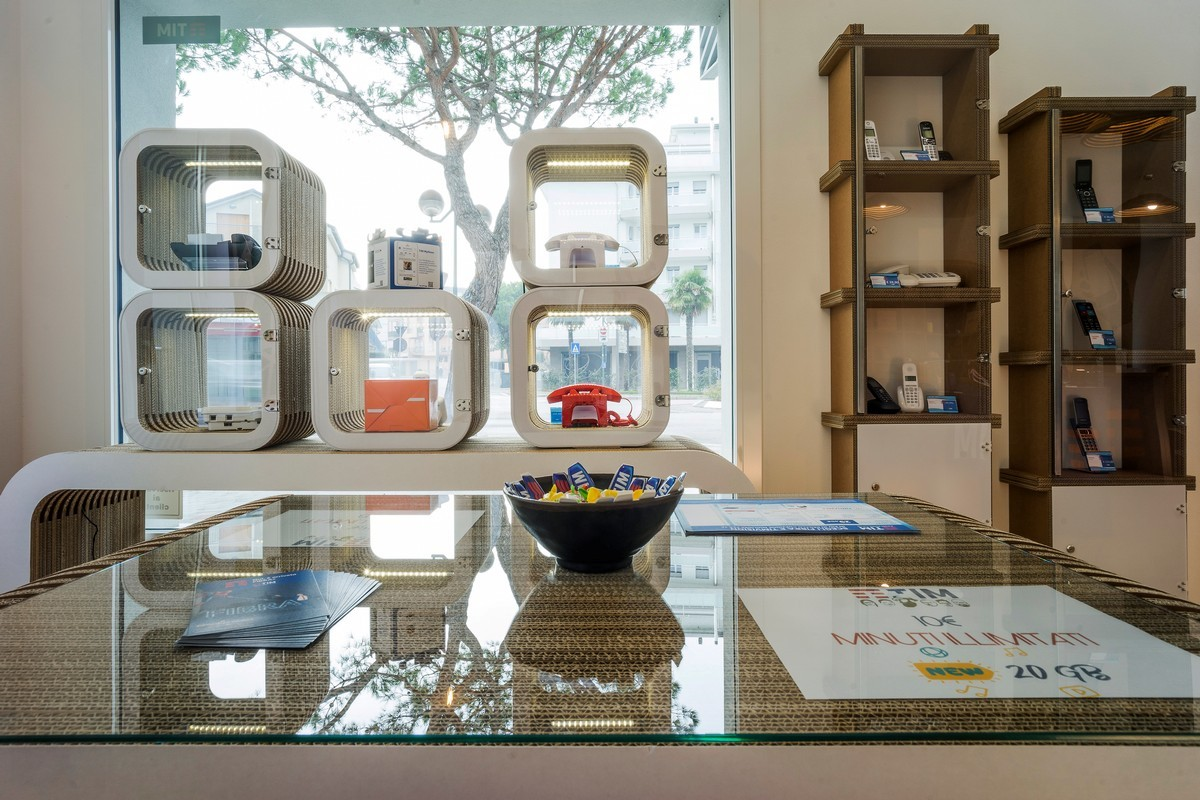 Auch wenn der Karton augenscheinlich einfach und wenig konventionell ist, bietet er außerordentliche Möglichkeiten, was Design und Personalisierung betrifft. Seine natürliche Vielseitigkeit und macht ihn ideal für eine große Bandbreite von Anwendungen, angefangen vom kreativen minimalen oder linearen Design bis hin zu raffinierten und noch künstlerischeren Lösungen. Dank seiner Eigenschaft, sich recht leicht in Form bringen, sich falten und anpassen zu lassen, macht es der Karton möglich, Einrichtungsgegenstände mit einzigartigen Formen und Strukturen herzustellen, die fähig sind, sich bestens an die ästhetischen und funktionalen Anforderungen eines jeden Geschäfts anzupassen.
