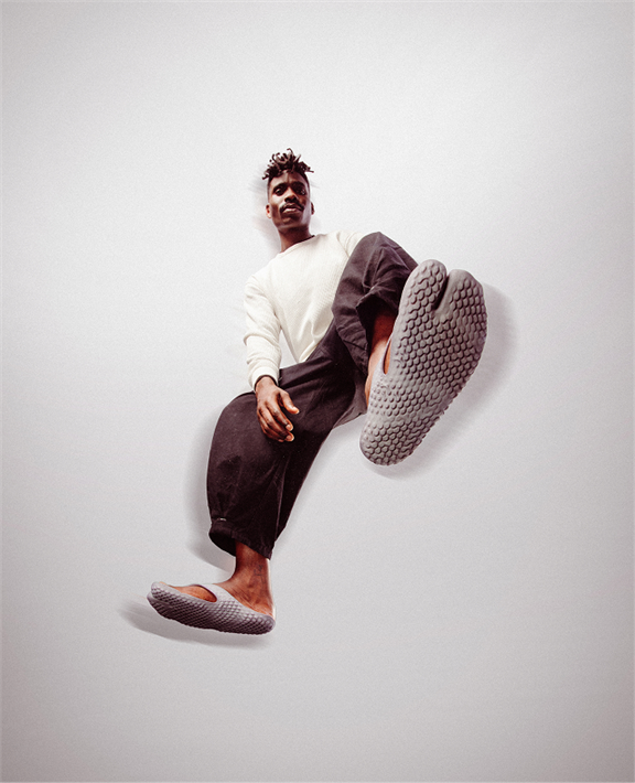 Was nach Zukunftsmusik klingt, ist in Vivobarefoots neuer Mikro-Fabrik in London bereits Realität. „Die Idee hinter Vivobiome ist nicht neu – aber in dieser Konsequenz technologisch erstmals umsetzbar", erklärt Clark. Ein präziser 3D-Scan bildet den Ausgangspunkt: Er erfasst Form, Struktur und Haltung des Fußes millimetergenau und liefert die Daten, aus denen das digitale Design entsteht. Mithilfe von SLS-Druckverfahren (Selective Laser Sintering) wird das Modell anschließend in der lokalen Mikro-Fabrik gefertigt – ganz ohne Abfall oder Lagerhaltung. Die verwendeten Materialien sind biobasiert, langlebig oder vollständig recycelbar. „Die neu entwickelte Tabi-Sandale erlaubt eine unabhängige Bewegung der Großzehe – ein zentrales Element in der Biomechanik des Gehens", so der Vivobarefoot-Gründer. „Diese scheinbar kleine Veränderung verbessert die natürliche Stabilität und stärkt die Fußmuskulatur", führt er weiter aus. Statt unnatürlicher Dämpfung setzt Vivobiome auf natürliche Kraft, Flexibilität und ein intensiveres Gefühl. Das sorgt für ein barfußnahes Geherlebnis, das die natürliche Fußentwicklung fördert, das Gleichgewicht stärkt und Fehlstellungen vorbeugt. Traditionelle Einheits-Flipflops hingegen nennt Clark „ein Desaster für die Füße – lose Riemen, schlechter Halt, überhängende und unbewusst angespannte Zehen. Sie arbeiten gegen den Körper, nicht mit ihm."Neue Wege der Schuhproduktion: Nachhaltigkeit und Präzision im digitalen Zeitalter