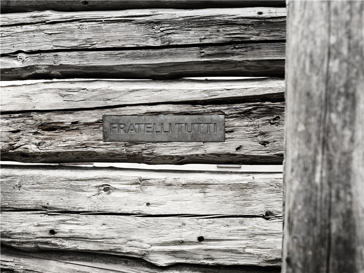 Fratelli TuttiInspiriert von Jorge Bergoglio und seiner Enzyklika Fratelli Tutti ist diese Installation eine Hommage an die universellen Werte von Liebe und Frieden, die alle Religionen der Welt teilen. Aus recyceltem Holz einer verlassenen „Baita" in Pavicolo in den italienischen Alpen erwacht sie als Ort der Besinnung und der Begegnung zu neuem Leben.