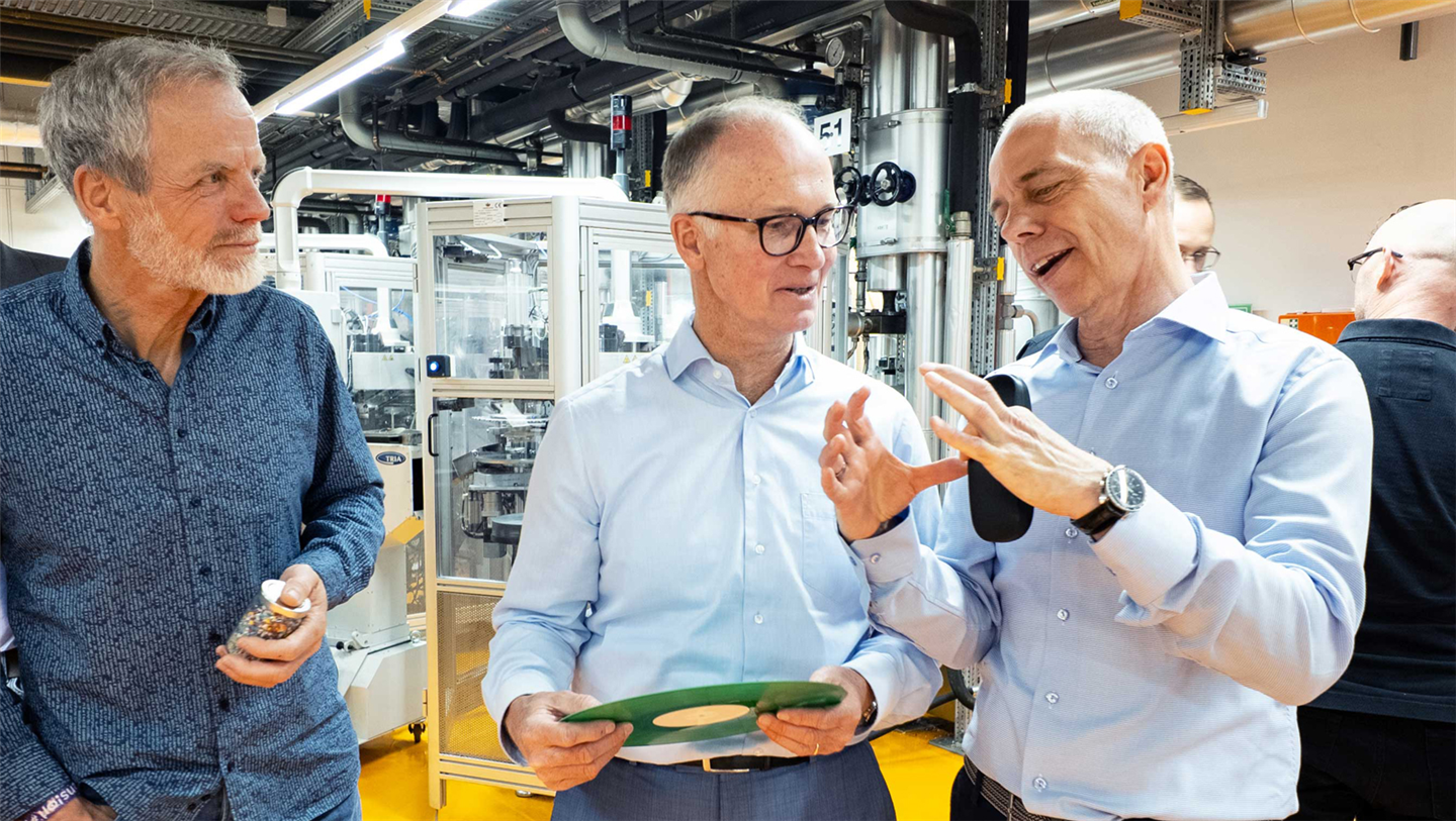 Ein nachhaltiges Gesamtpaket, das nicht nur viele Künstler wie Peter Fox, Billie Eilish, Ed Sheeran oder Red Hot Chili Peppers überzeugt. Beeindruckt zeigten sich beim Firmenbesuch auch die Geschäftsführer von VinylPlus Deutschland, Thomas Hülsmann und Dr. Alexander Kronimus: „Die europäische PVC-Branche geht mit ihrer Selbstverpflichtung VinylPlus bereits seit 25 Jahren mit konkreten Zielen bei der Transformation in Richtung Kreislaufwirtschaft und Klimaneutralität voran. Die Fortschritte hier vor Ort spiegeln dieses langjährige Nachhaltigkeitsengagement unserer Industrie", so Kronimus. „Moderne ressourcenschonende Fertigungstechniken, der Einsatz von erneuerbaren Energien und insbesondere die verstärkte Verwendung von Rezyklaten und moderner biobasierter Rohstoffe sind auch Ziele von VinylPlus. Die Umsetzung hier vor Ort bei der Produktion eines so emotional besetzten Produkts wie der Vinyl-Schallplatte live zu erleben ist faszinierend und bestätigt uns darin, unseren Weg in Richtung Nachhaltigkeit konsequent weiterzuverfolgen", ergänzt Hülsmann.