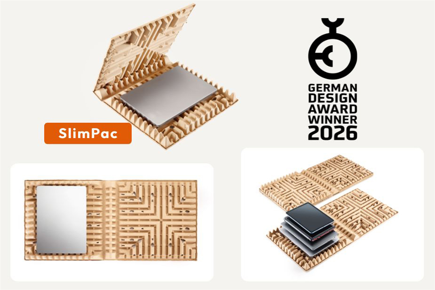Die buhl-paperform GmbH wurde mit dem German Design Award 2026 als "Winner" in der Kategorie Packaging sowie Circular Design ausgezeichnet. Prämiert wurde die Verpackungslösung SlimPac, ein klappbares Faserguss-Standardpolster für den Einzelversand flacher, empfindlicher Produkte wie Laptops, Tablets oder Displays.