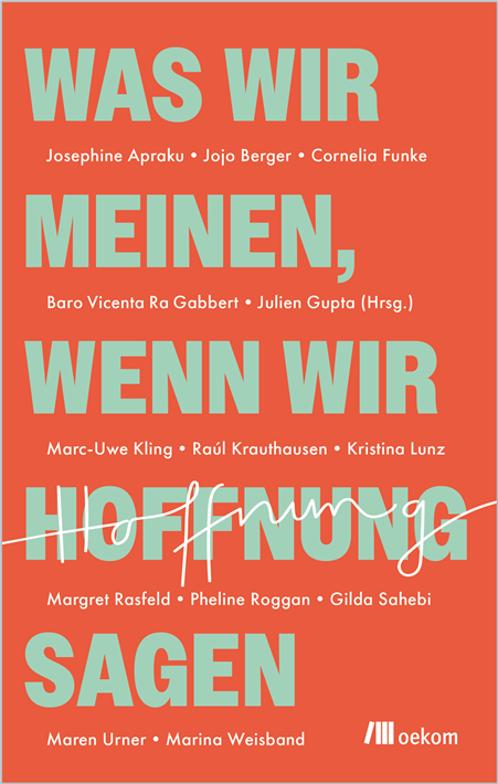 Journalist und Herausgeber Julian Gupta zeigt in „Was mir meinen, wenn wir Hoffnung sagen", wie dieser theoretische Ausgangspunkt konkret Gestalt annehmen kann. Er stellt sich und seinen Co-Autor*innen die scheinbar simple Frage: Was meinen wir mit Hoffnung? Die daraus resultierenden Aufsätze gewähren intime Einblicke in die Welt der Hoffenden und deren persönlichen Erfahrungen mit Angst und Zuversicht.