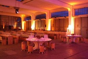 Schick und natürlich: Auch beim CIB German Day 2010 wurde ausschließlich Sitz- und Loungemobiliar aus Altholz genutzt (ehemalige Gerüstbohlen); Herbstlaub dekorierte die Tische, das Catering war ausschließlich saisonal und regional. |