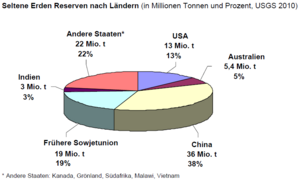 Seltene Erden Reserven nach Ländern (in Millionen Tonnen und Prozent, USGS 2010) |