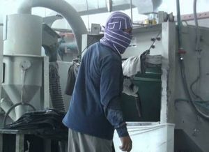 Die Sandstrahltechnik verleiht unseren Blue Jeans nicht nur ein gebrauchtes Aussehen... Viele Arbeiter erleiden aufgrund unzureichender Schutzvorkehrungen innerhalb kurzer Zeit die unheilbare und meist tödliche Silikose, Staublunge. |