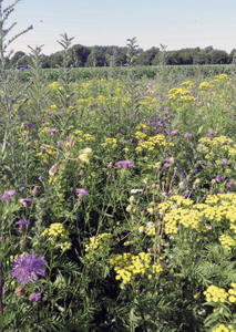 Es gibt aber auch einen anderen Weg, den die "Bayerische Landesanstalt für Weinbau und Gartenbau" (LWG) eingeschlagen hat: Dort ist die Biologin Dr. Birgit Vollrath als wissenschaftliche Mitarbeiterin tätig (Abteilung Landespflege) und leitet die Versuche im Projekt "Energie aus Wildpflanzen". Die Idee dazu stammt aus früheren Projekten, in denen es um eine gezielte Begrünung von Brache- und Stilllegungsflächen ging (zum Beispiel im Projekt "Lebensraum Brache"). Dr. Vollrath: "Wir stellten fest, dass bei einigen Saatgutmischungen sehr hohe Zuwächse an Biomasse auftraten". So kamen die Wissenschaftler darauf, Wildpflanzen-Mischungen speziell zur Produktion von Biomasse einzusetzen.