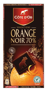 Sensations Noir Orange 70% - dunkle Schokolade mit 70 Prozent Edelkakao, kombiniert mit dem harmonischen Aroma sonniger Orangen.