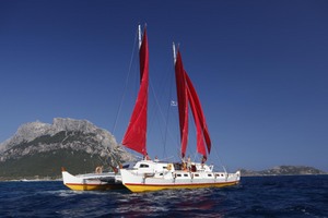 Im Rahmen der Initiative "Global Ride to Rio" zur Förderung von Fahrradmobilität überqueren Sie den Atlantik mit einem außergewöhnlichen Hochsee-Katamaran. Die "Ark of Ideas" ist ein besonderes Segelschiff, das dem Design der polynesischen Stammesschiffe nachempfunden wurde und dessen Energiekonzept auf der Synthese von Natur und innovativer Technologie beruht. Der Katamaran symbolisiert die Forderung nach umweltverträglicher Mobilität, die auch durch eine Stärkung des Fahrradverkehrs erreicht werden kann.