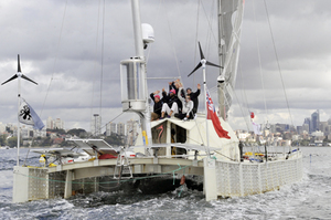 Bestehend aus 12.500 PET-Flasche, Energiebetrieben mit Wind- und Solarenergie, zusammengeklebt mit einem Mix aus Cashewnüssen und Zucker: Der Katamaran Plastiki fuhr 2010 eine Expedition durch den Pazifik, um auf den dortigen riesigen Müllstrudel und die Belastung der Ozeane mit Plastikmüll aufmerksam zu machen. |