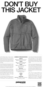 Brauchst Du das wirklich?! Diese Anzeige wurde am 25.11.2011 von Patagonia in der New York Times geschaltet - unmittelbar nach dem konsumintensiven Thanksgiving. Patagonia wirbt darin für den nachhaltigen Umgang mit Ressourcen (Reduce, Repair, Reuse, Recycle) und ruft Verbraucher dazu auf, nur Produkte zu kaufen, die sie wirklich benötigen: Reimagine - "TOGETHER we reimagine a world where we take only what nature can replace". |