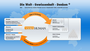 OekoHuman ist eine Sichtweise, die Ökonomie, Ökologie und Ökumene (im Sinne von Glauben/Ethik) ebenso umfasst, wie den Menschen als Individuum in allen seinen Organisationsformen von der Familie bis zum Staat. Sie will all dies in einen gesunden Kreislauf bringen, und fordert ein gewissenhaftes Denken und entsprechendes Handeln. Nur ein "gesunder Kapitalismus", kann auch allen zu Wohlstand verhelfen.