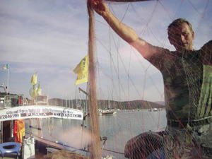 Meine Interesse ist geweckt - nur leider: Ein freundlicher Mann, der an Bord Netze repariert erklärt mir: Today no tourist trip - an diesem Tag keine Touristenfahrt.