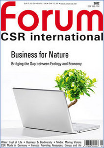 forum CSR international berichtet halbjährlich aktuell und kompetent über neue Entwicklungen, Trends und Erfolgsbeispiele zu den Themen Nachhaltigkeit und unternehmerische Verantwortung in Wirtschaft, Politik und Gesellschaft. Mit einer Auflage von 10.000 Exemplaren erreicht forum CSR international eine breit gefächerte Leserschaft. Unter www.forum-csr.net finden sich die Inhalte des Magazins, aktuelle News, Literatur- und Surf-Tipps sowie Termine zum Thema Nachhaltigkeit. forum CSR international "Business for Nature" umfasst 52 Seiten und kann hier bestellt werden.