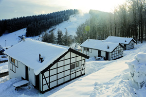 Auch wenn der Schnee an das geschüttelte Federbett der Frau Holle denken lässt - hier geht es um das Bett aus Schaumglasschotter, in dem 200 Ferienhäuser im Ferienpark Landal Winterberg im Sauerland sicher ruhen |