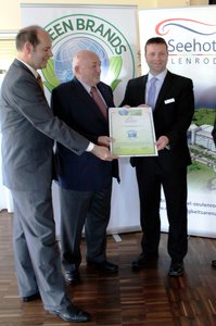 Im Rahmen einer feierlichen Veranstaltung übergab Norbert Lux, der Chief Operating Officer der GREEN BRANDS Organisation, das Zertifikat an Professor Hans B. Bauerfeind, dem Eigentümer des Hauses, im Beisein des Direktors Marco Lange. Umweltbewusstsein und Nachhaltigkeit ist seit jeher in der Unternehmensphilosophie verankert. Als erstes Hotel, das klimaneutrale Tagungen und Aufenthalte anbietet, gilt das Bio-Seehotel als Vorreiter für Branche und Region. Dies beweist, neben zahlreichen Zertifikaten und Auszeichnungen, wie beispielsweise dem B.A.U.M Umweltpreis oder dem europäischen Eco-Label, einmal mehr die neueste Auszeichnung zu den GREEN BRANDS Germany 2012/2013.