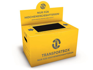 Ergänzend zu den bisherigen grünen Sammelbehältern, gibt es nun gelbe Boxen für Hochenergiebatterien. |