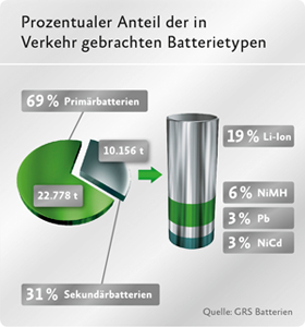 Leistungsstarke Batteriesysteme finden immer mehr Verwendung in allen Lebensbereichen. Vom Smartphone bis hin zum Akkuschrauber - in vielen Geräten stecken heute sogenannte Hochenergiebatterien, die sowohl die Rücknahme als auch die Verwertung vor zunehmend höhere sicherheitstechnische Anforderungen stellen. Und der Marktanteil von Hochenergiebatterien nimmt weiterhin zu. Aktuellen Statistiken zufolge hat sich in den vergangenen Jahren der Gerätebatteriemix zugunsten sogenannter Sekundärbatterien (Akkus, die nach Gebrauch über ein Ladegerät mit neuer Energie versorgt werden) verändert. Zudem ist innerhalb dieser Akkusysteme der Marktanteil von Lithiumbatterien sehr stark gewachsen. So sind mittlerweile rund 2/3tel (63%) aller Sekundärsysteme Lithiumsysteme. 1999 waren es noch 10 Prozent.